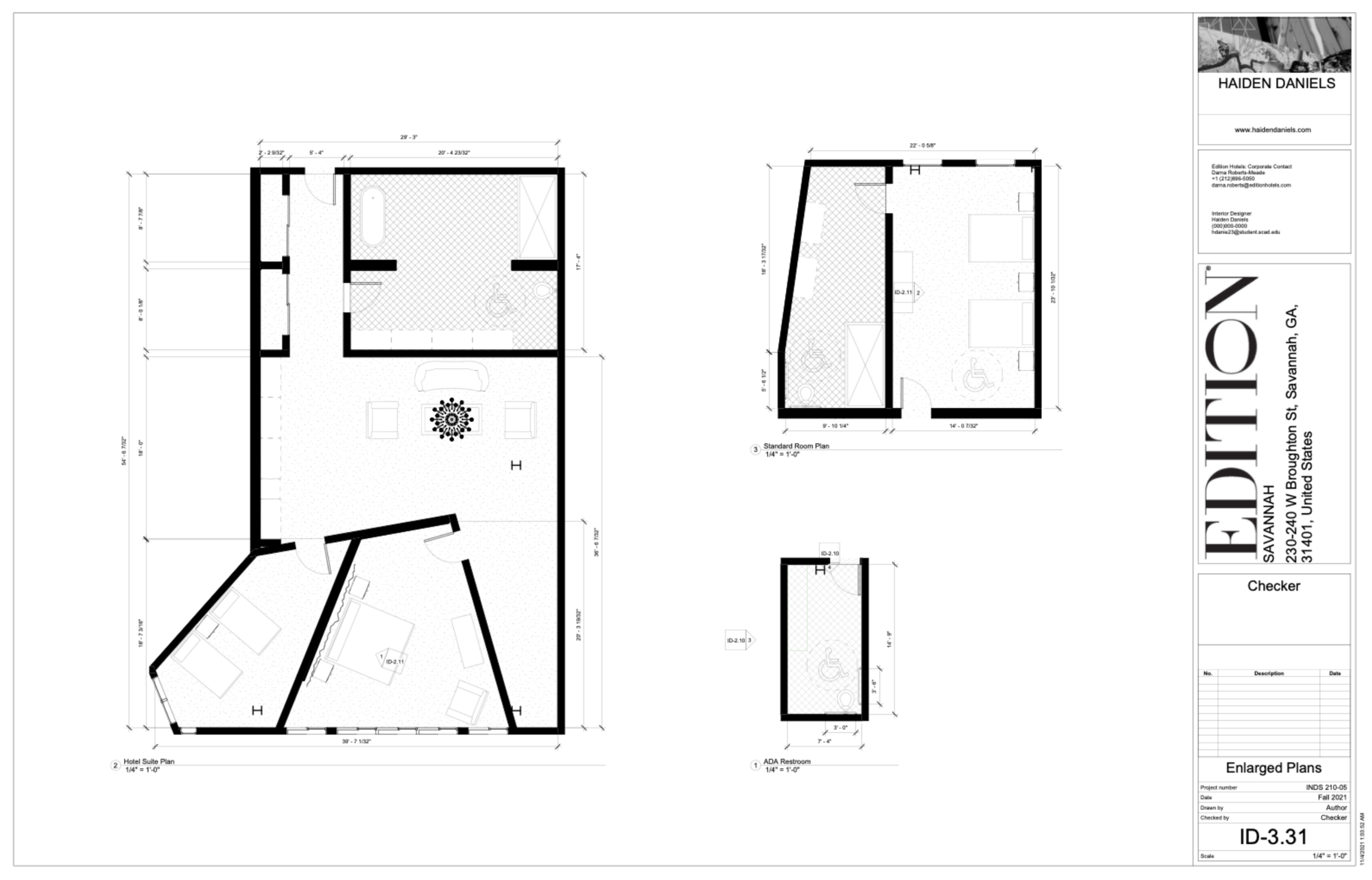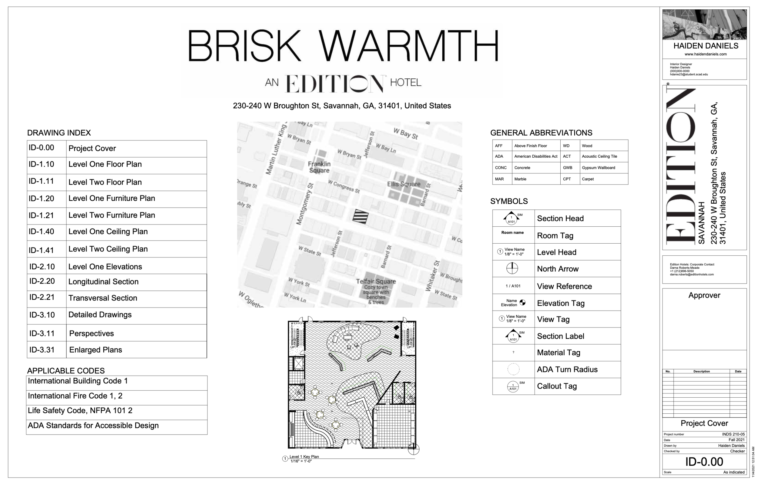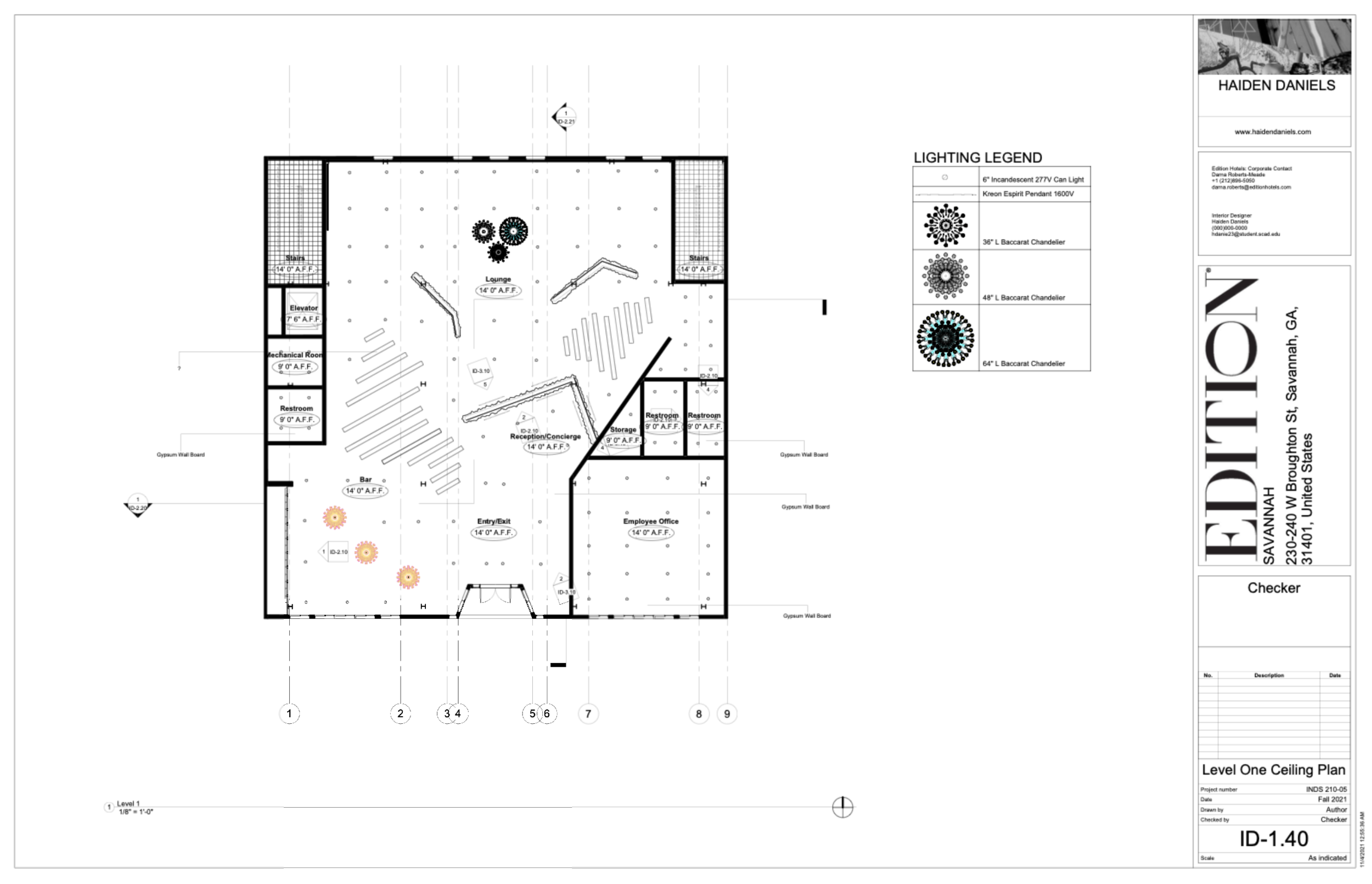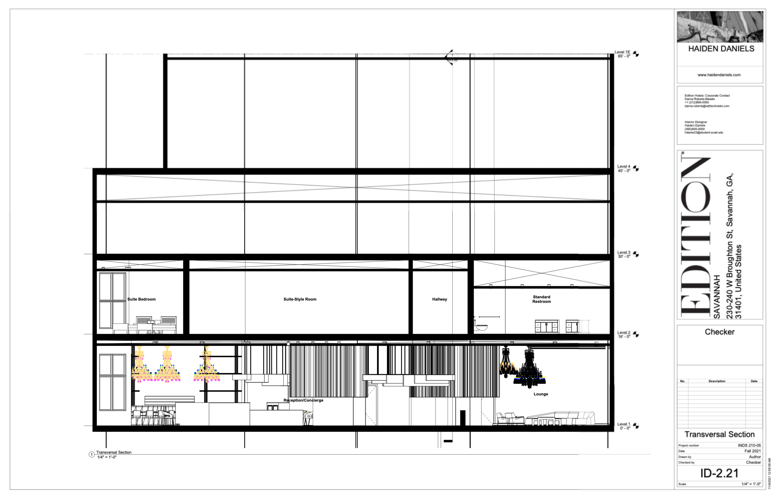 The heart-warming city of Savannah is a one-of-kind Southern experience, in which tourists want to feel welcomed. The new EDITION hotel offers amenities and a sophisticated design, while combining the old and new lifestyle. The goal of the design is to create a unique environment that is inclusive to all users, and make each visitor feel that they are a true Southern Belle living in their Plantation style mansion. Dramatic colors and variation in spaces will make each space feel personable and relate the past with the present, allowing the space to be relatable and timeless.