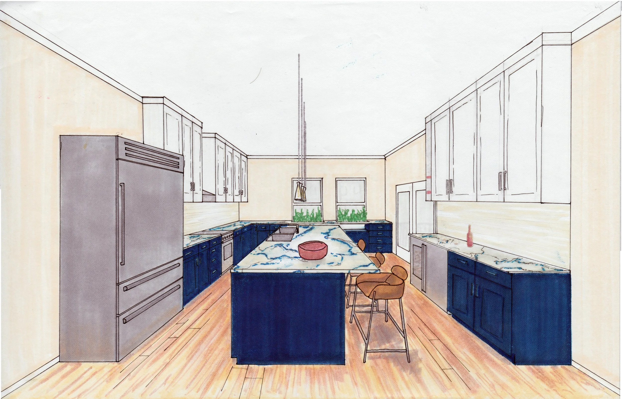 Diving a little deeper into technique building, this small floor plan design emphasizes detail and render appearance through the use of 2D mixed media.